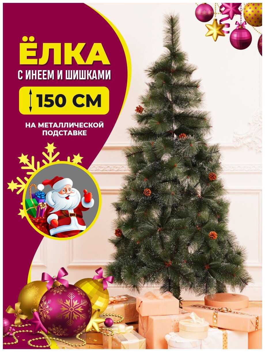 Характеристи Золотая сказка Ёлка искусственная, пушистая с инеем и шишками