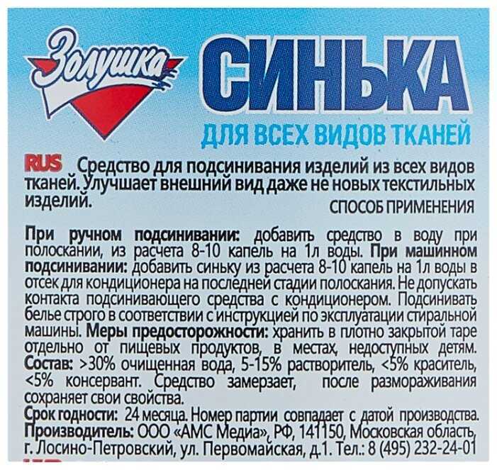 21 отзывов пользователей o Золушка Средство для подсинивания белья Синька