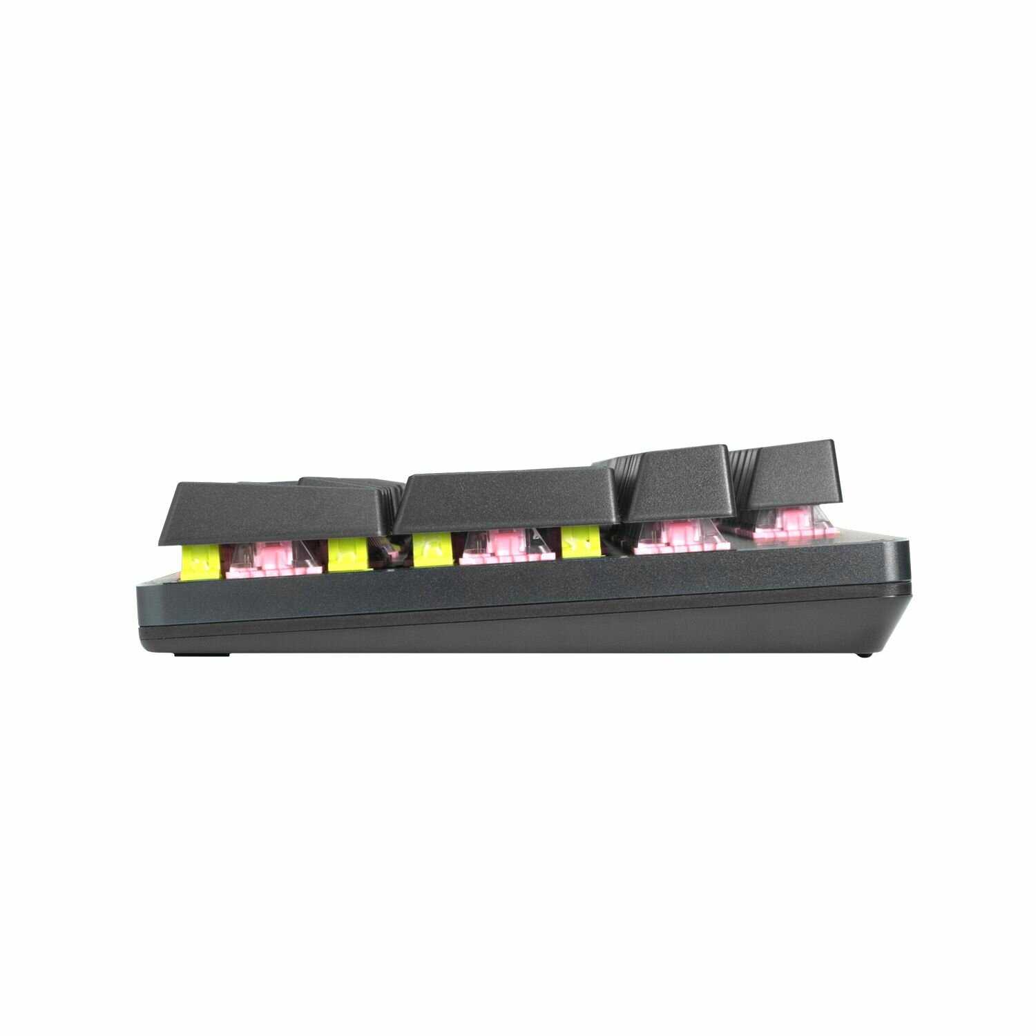 Тихая, как для механики, но все же громче мембраной из-за стука колонка по корпусу свитча
