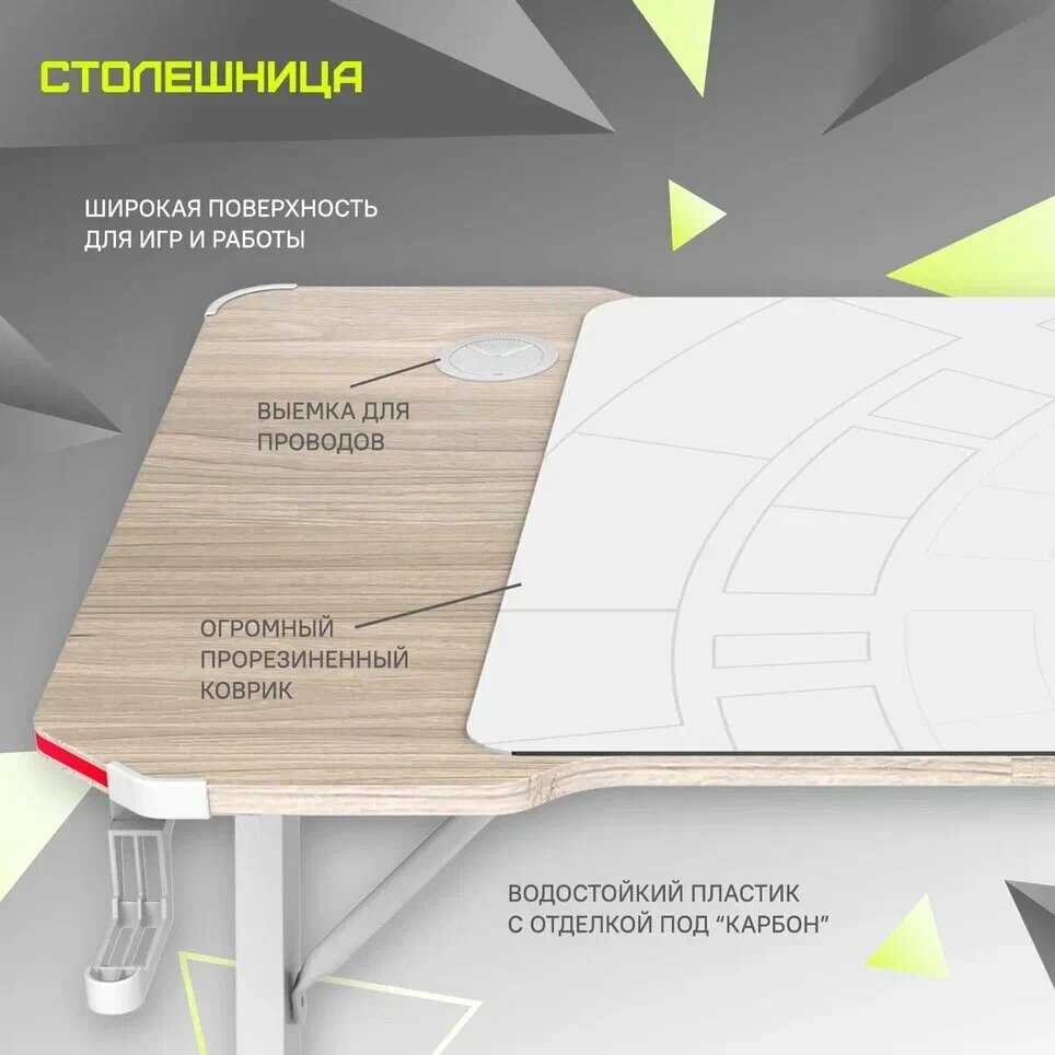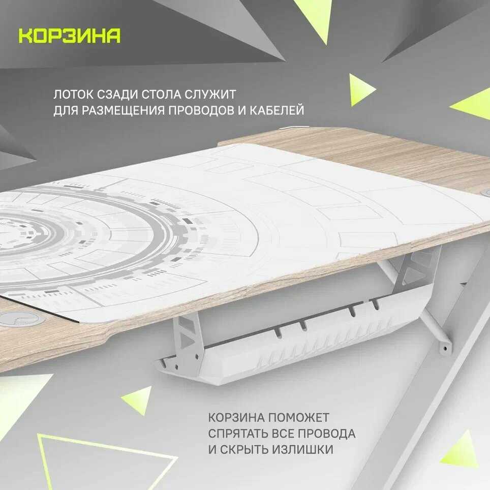 Стол хороший, подсветка относительно яркая, сам стол выдерживает мой довольно тяжелый пк (по ощущениям килограмм 40), и все аксессуары включая моник. Сам стол маркий, если ладошки чуть вспотеют - будут следы, даже если влажной салфеткой протирать, от нее тоже следы останутся. Для меня это не критично, так что ок. Так же стол шатается если приложить небольшое усилие, но сам стол стоит уверенно, не перевернешь, только если специально будешь сильно качать. В целом стол рекомендую к покупке, оочень просторный и комфортный, 3 варианта высоты - довольно удобные, мне подходит. Корзинка для проводов тоже удобная, туда сложить особо ничего не получится, но как вариант «держателя» проводов подходит. Мне удобно что бы адаптер был слева, а компьютер справа, и вот какая проблема, в комплекте нет провода никакого для него. Да и проблемно дома найти провод длинной 2м что бы подсоединить его к пк, приходится к другой розетке питать, не удобно в этом плане.
