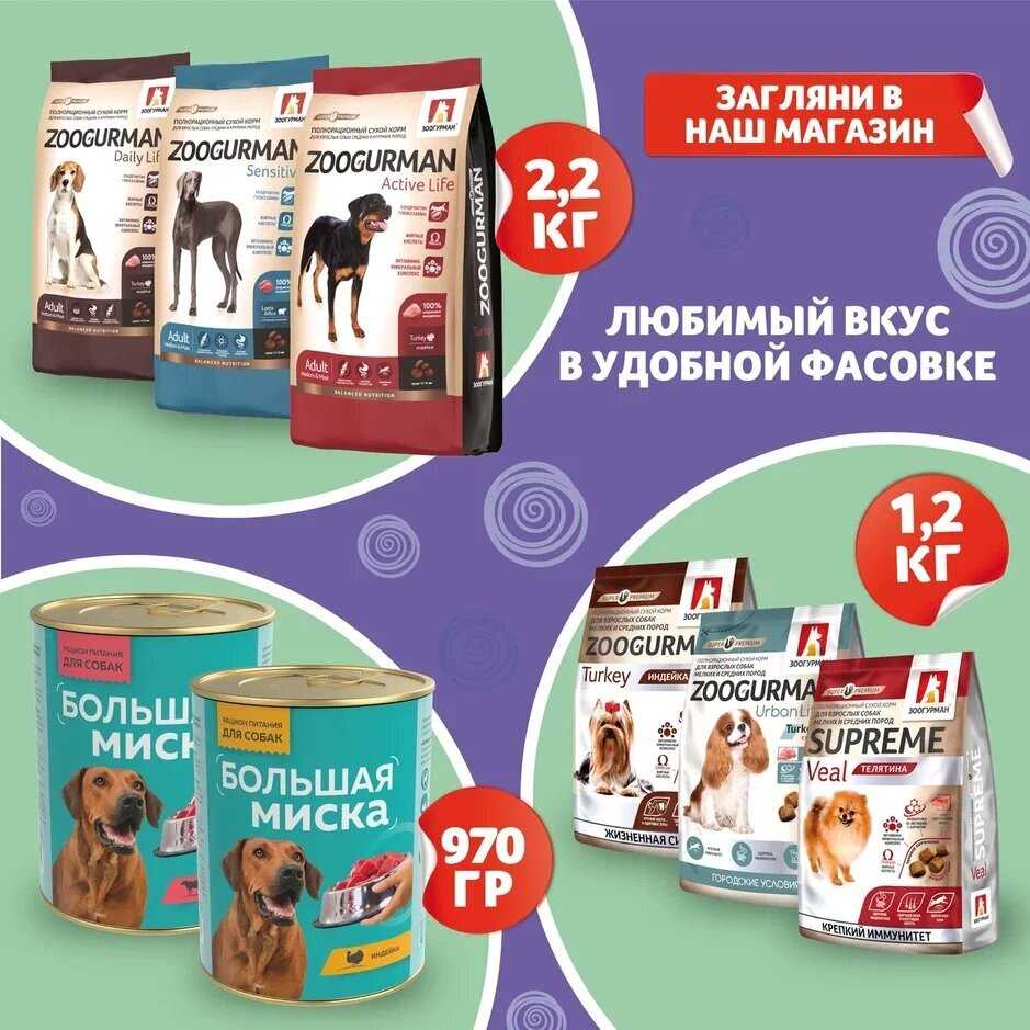 - + Собаки в восторге от корма.
