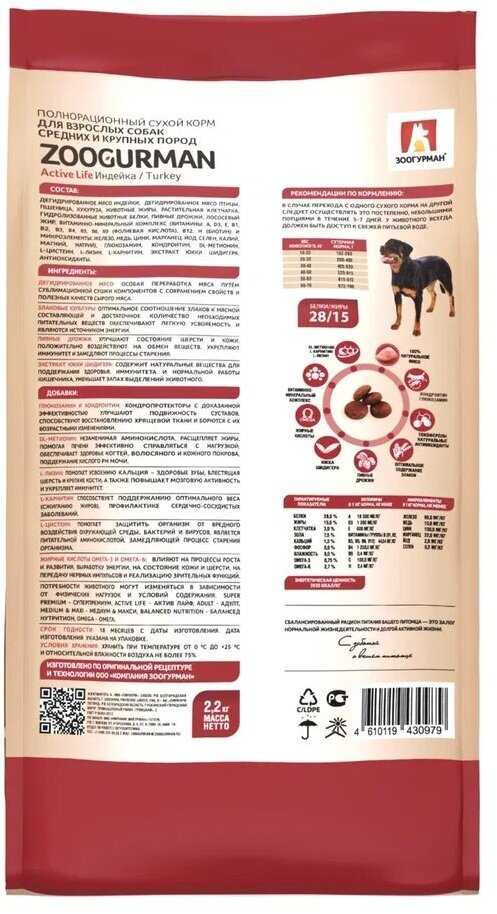 20 отзывов пользователей o Зоогурман Индейка для взрослых собак средних и крупных пород