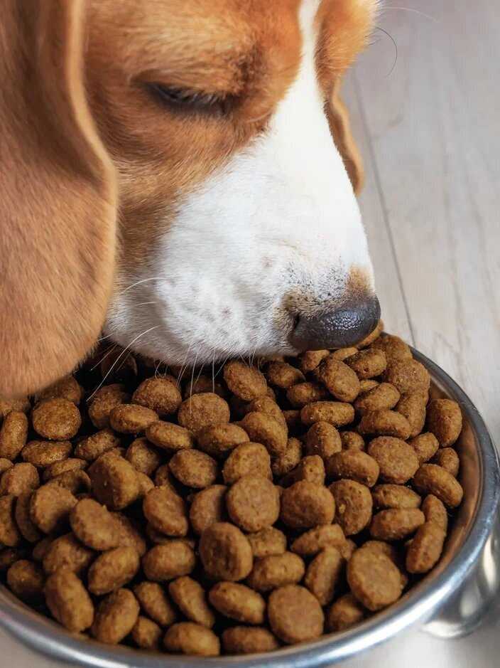 собака ест с удовольствием