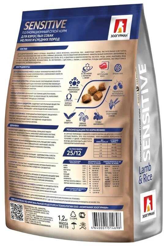 Отзывы о Sensitive ягненок с рисом для мелких и средних пород
