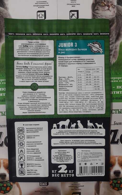 Прежде чем кормить изучала вопрос о нормах кормления сухим кормом, какие должны быть соотношения витаминов и минералов и т.п. Вообще этот корм лучше. многих импортных в 100 раз. Собака ест с удовольствием, стул в норме. Ну и большое спасибо производителю. Надеюсь заявленное на упаковке соответствует действительности