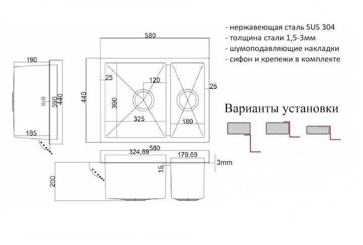 Отзывы о Мойка нержавеющая Zorg 580х440 мм R 58-2-44 INOX