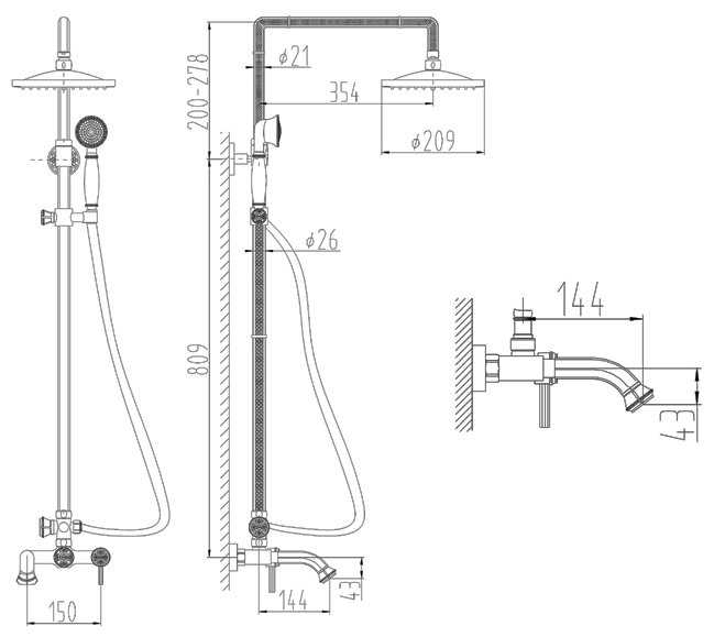 | Дополнительная информация : | высота стойки для душа: 1260 мм, диаметр верхнего душа: 209 мм |