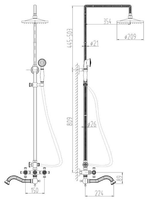 | Дополнительная информация : | высота стойки для душа: 1260 мм, диаметр верхнего душа: 209 мм |