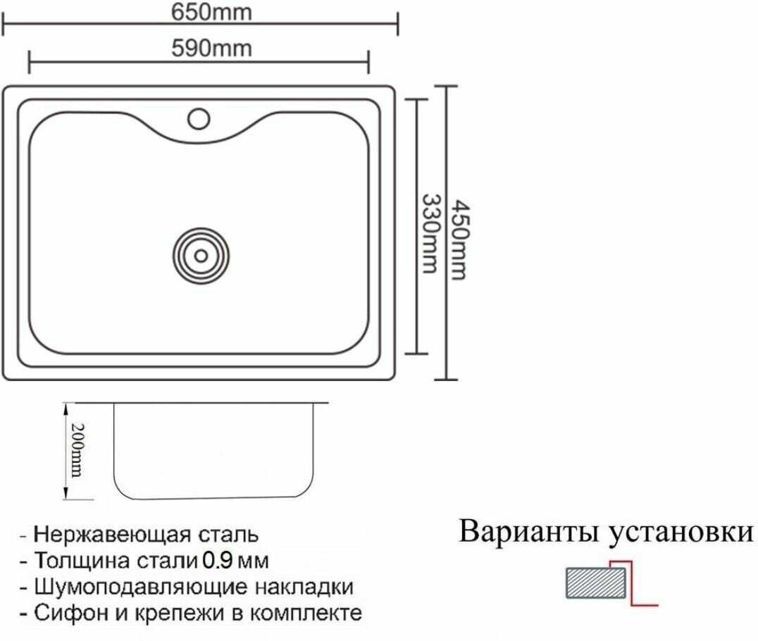 - форма мойки: прямоугольная
