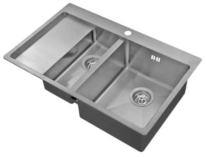 - + Большая стальная мойка. Не шумит вода (благодаря противошумному покрытию низа мойки).
