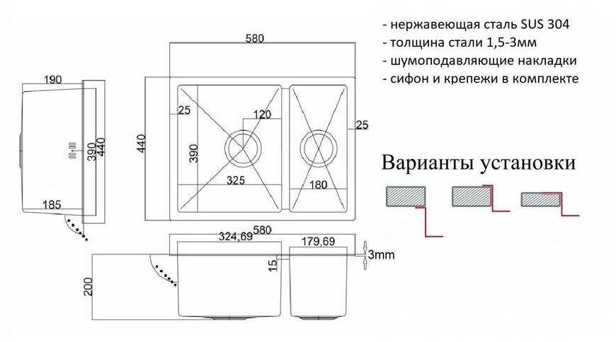 Отзывы о Мойка кухонная ZorG R 58-2-44 матовая, оборачиваемая, толщина 1,5 мм