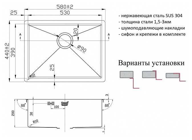 3 отзывов пользователей o ZorG Sanitary PVD 5844 GRAFIT, 44х58см, нержавеющая сталь