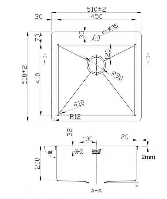 Характеристи ZorG Sanitary ZL R 510510, 51х51см, нержавеющая сталь