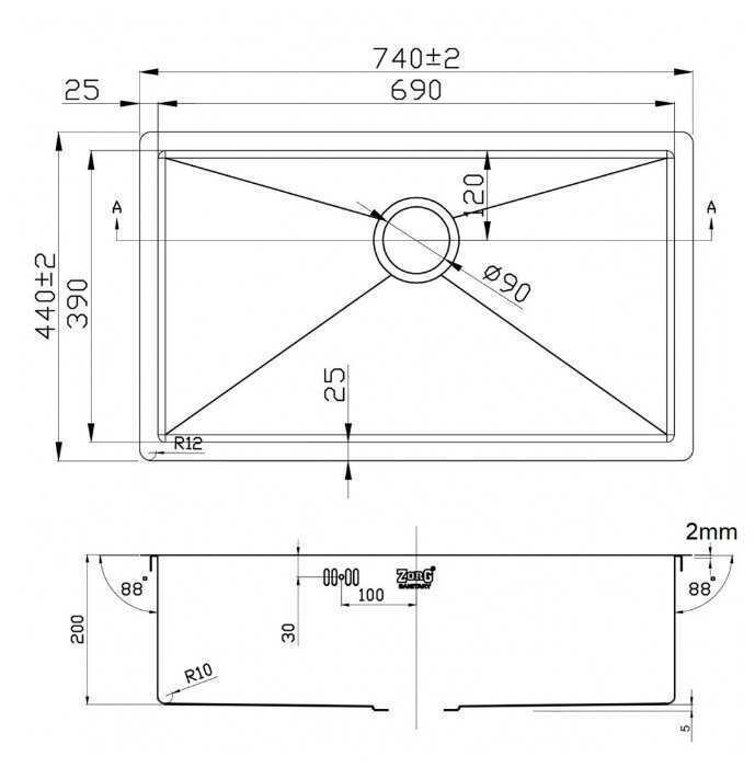 Характеристи ZorG Sanitary ZL R 740440 BRONZE, 44х74см, нержавеющая сталь