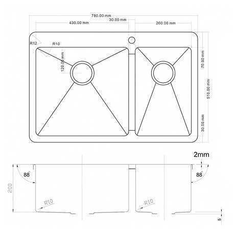 Характеристи ZorG Sanitary ZL R 780-2-510-L BRONZE, 51х78см, нержавеющая сталь