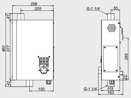 | Патрубок подключения контура отопления : | 1 ¼" |