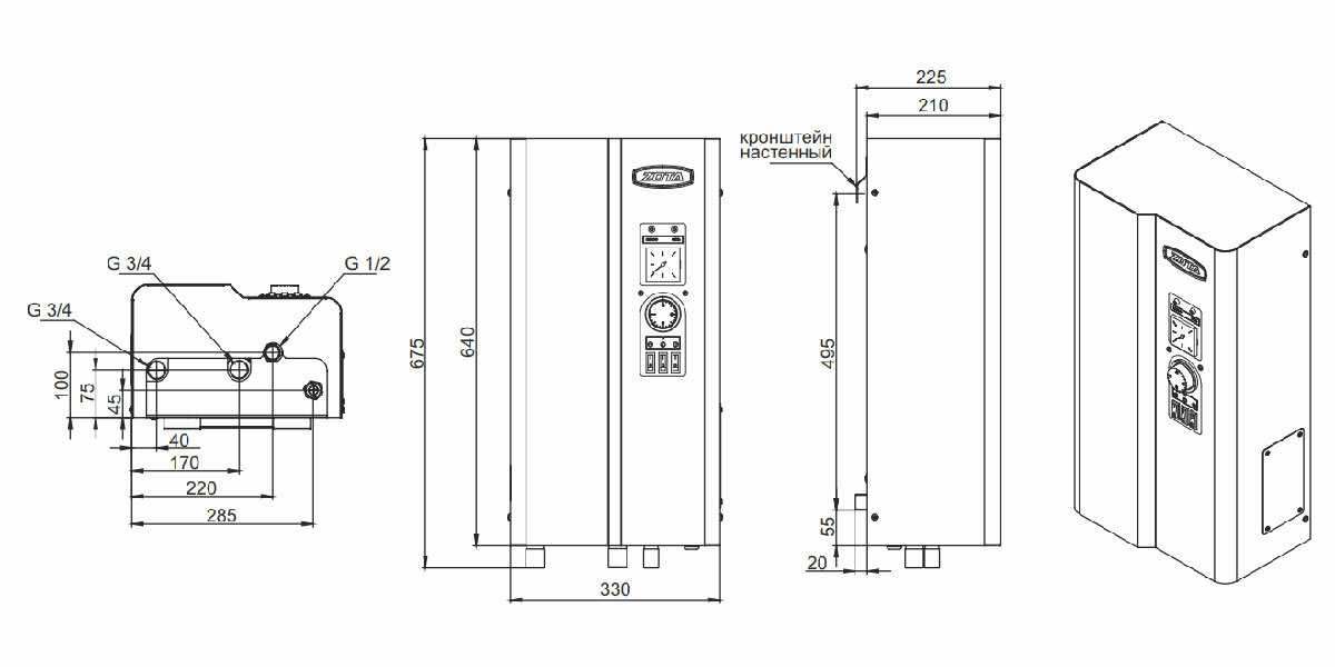 | Патрубок подключения контура отопления : | 3/4" |