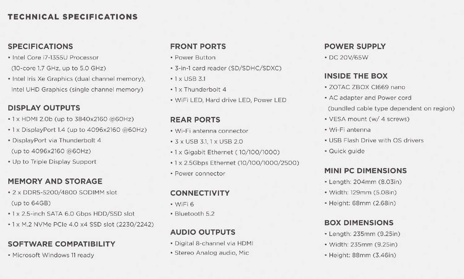 Характеристи ZOTAC ZBOX CI669 nano