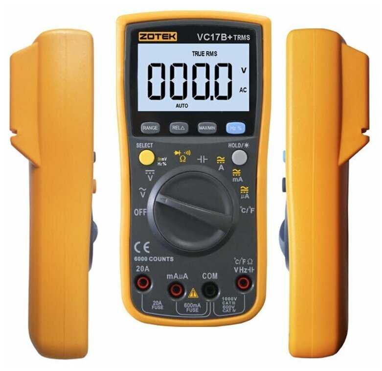 - + Автоматический выбор диапозонов измерения, ток до 20 А