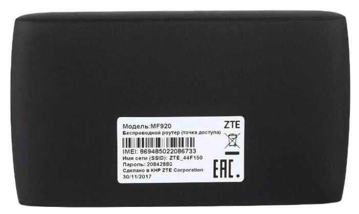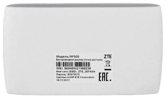 Дополнительная информация : | встроенная батарея на 2000 мАч, подключение 2-х внешних антенн, время работы в автономном режиме: 8 ч, поддержка MIM, поддержка VPN (VPN pass through), Web-интерфейс, работа через приложение ZTELink |