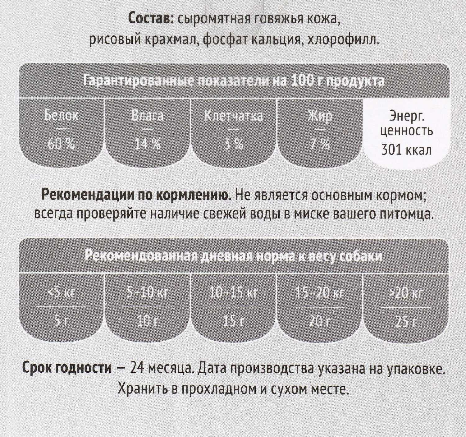 Состав : | сыромятная говяжья кожа, рисовый крахмал, фосфат калия, хлорофилл |