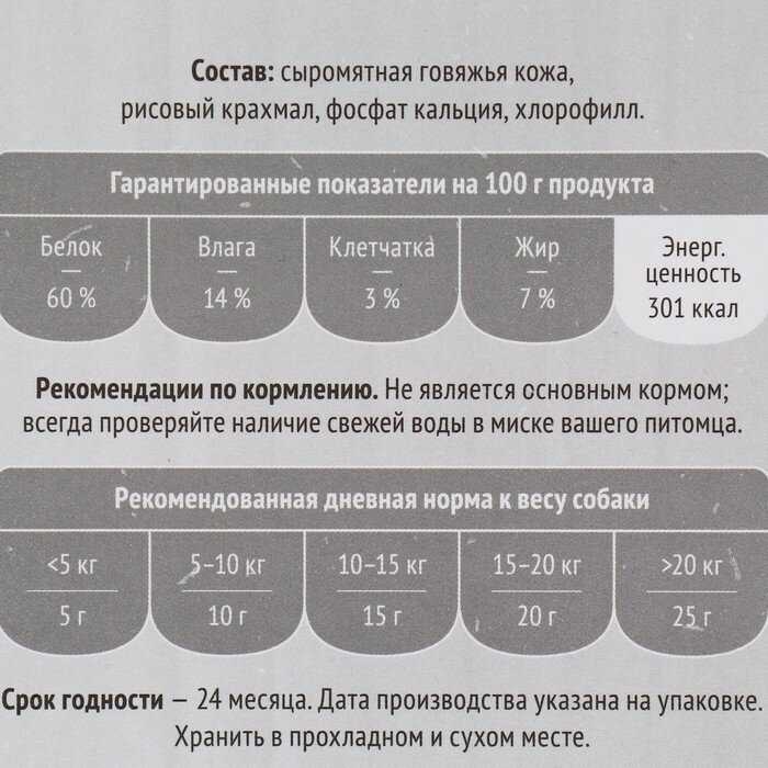 Состав : | сыромятная говяжья кожа, рисовый крахмал, фосфат калия, хлорофилл |