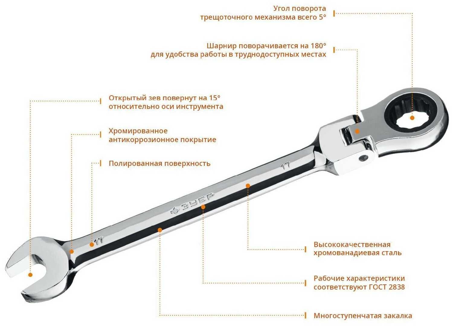 Дополнительная информация : | зубр профессионал, шарнирный, трещоточный, хромированный, crv сталь, 212 мм, гост 2838 |