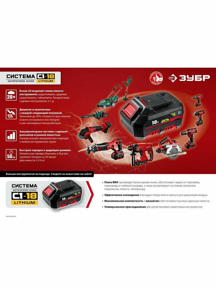 Отзывы о Аккумуляторная батарея ЗУБР 14.4В, Li-Ion, 2Ач, тип С1 (АКБ-С1-14-2)