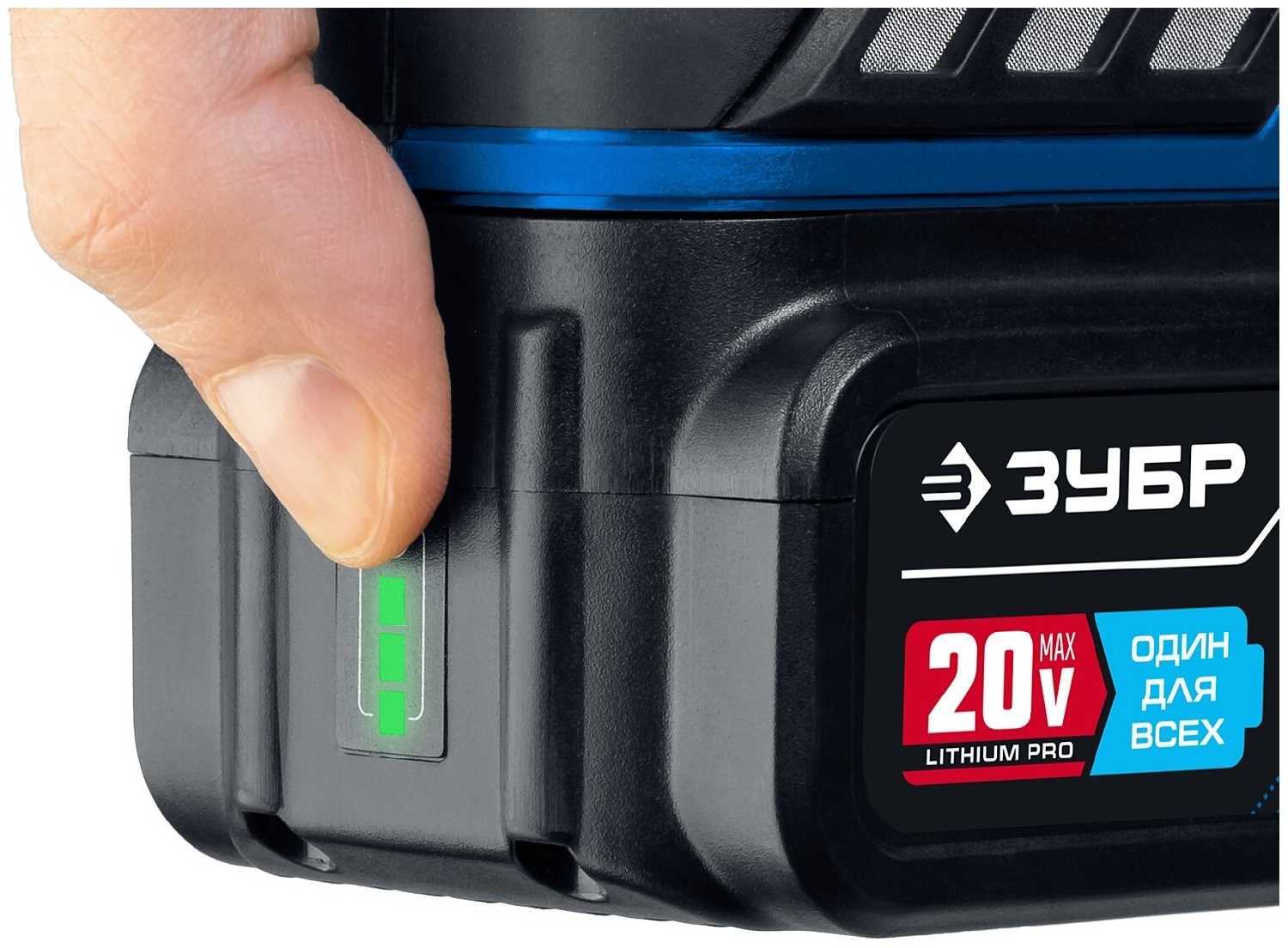 - аккумуляторная система: ЗУБР 20V MAX Lithium PRO