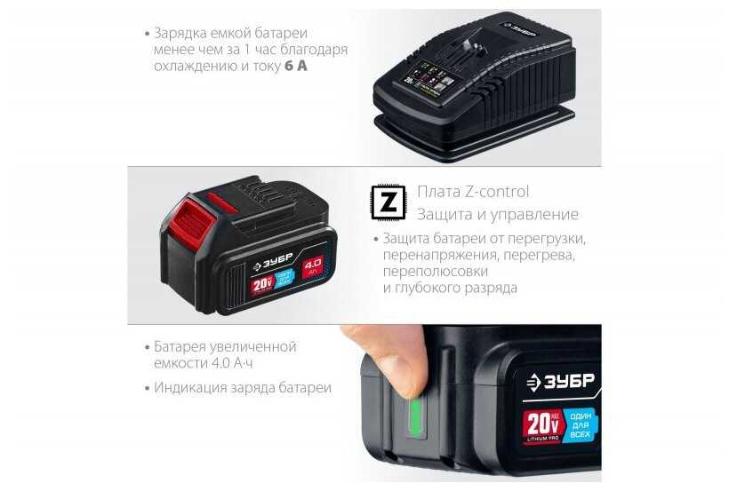| Аккумуляторная система : | ЗУБР 20V MAX Lithium PRO |