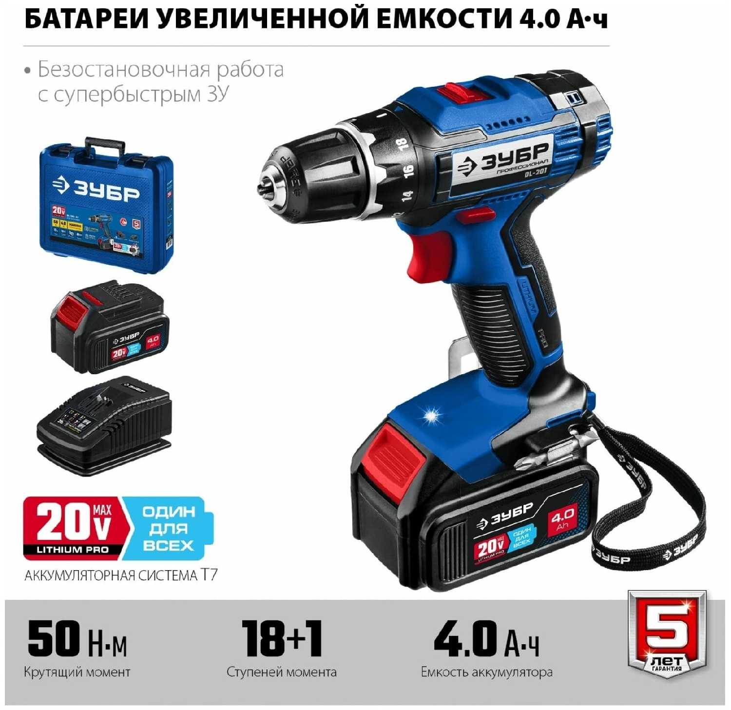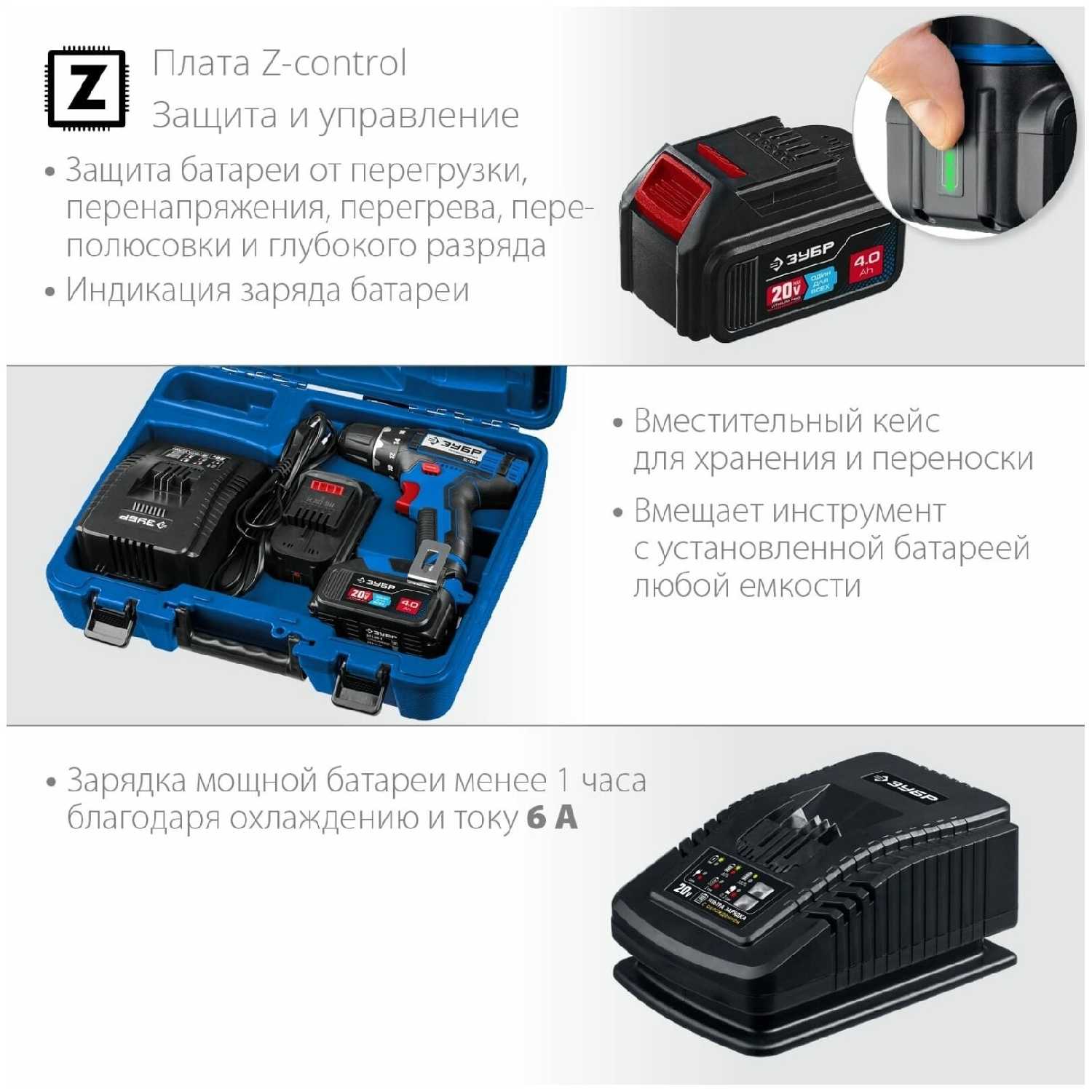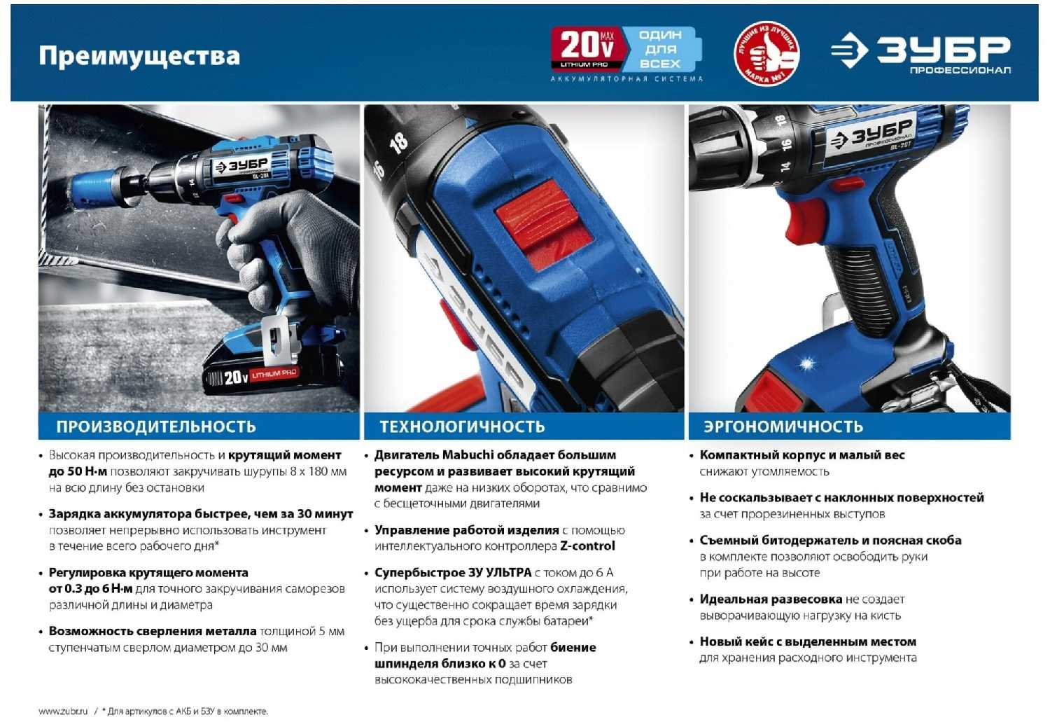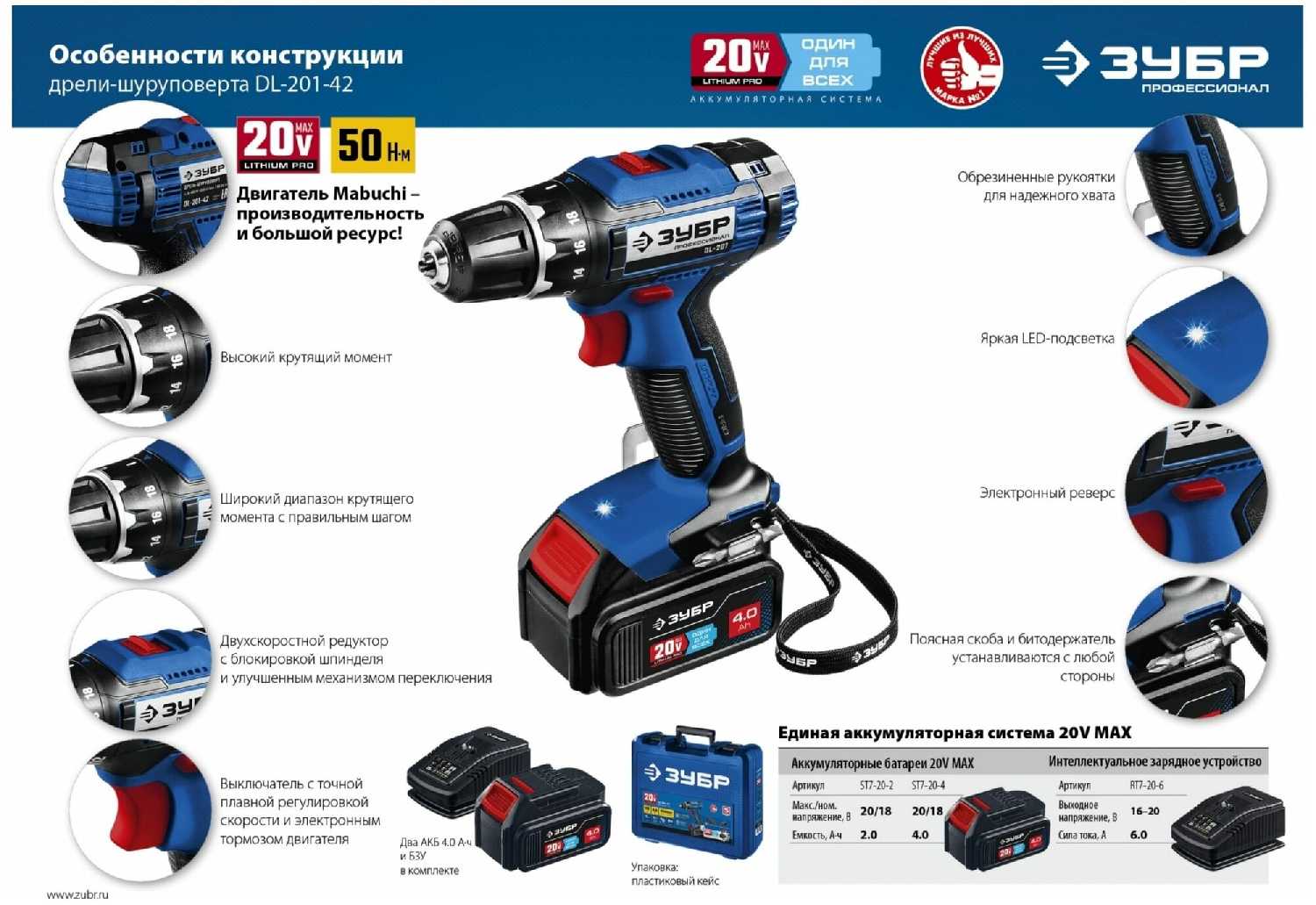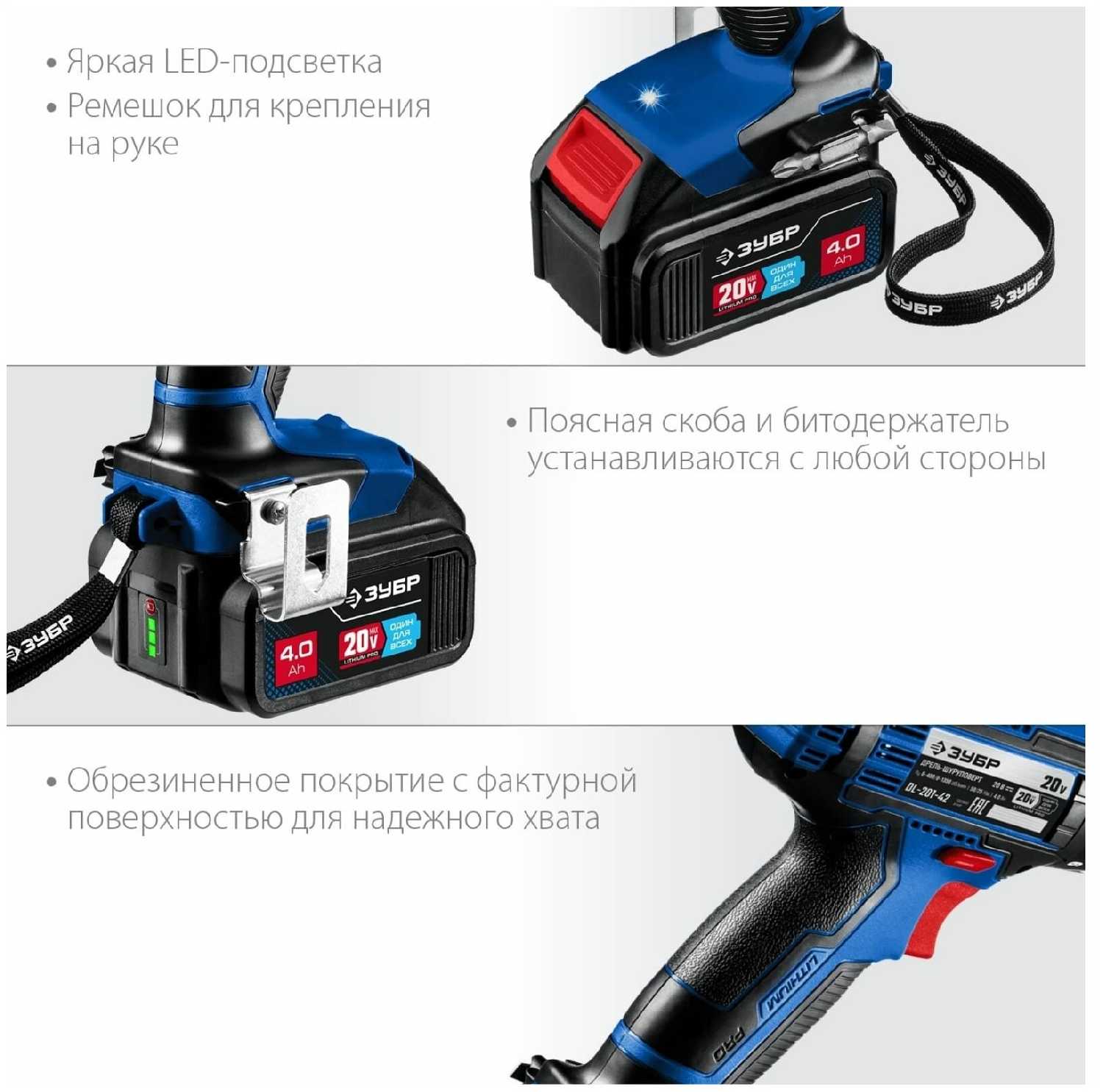 - аккумуляторная система: ЗУБР 20V MAX Lithium PRO