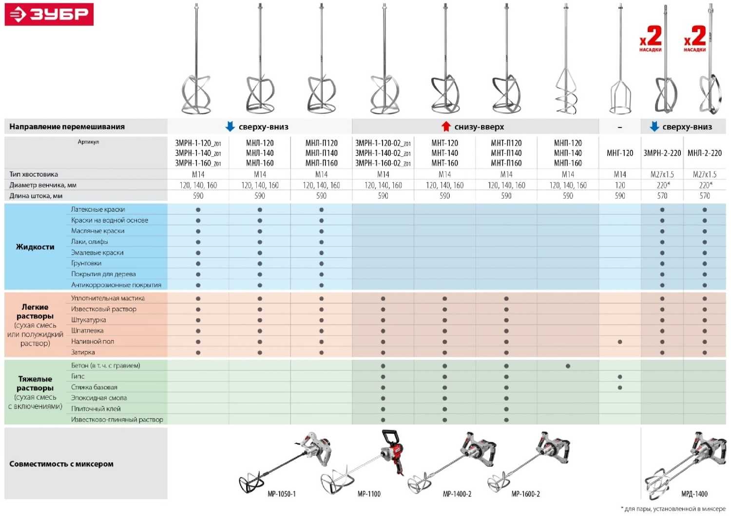 Штатный венчик рассчитан на легкие смеси. Для бетона с наполнителем (щебень, керамзит) пользователи рекомендуют докупать усиленные венчики с обратными лопастями и большим диаметром. При работе с тяжелыми растворами штатная насадка может деформироваться или создавать дисбаланс. -