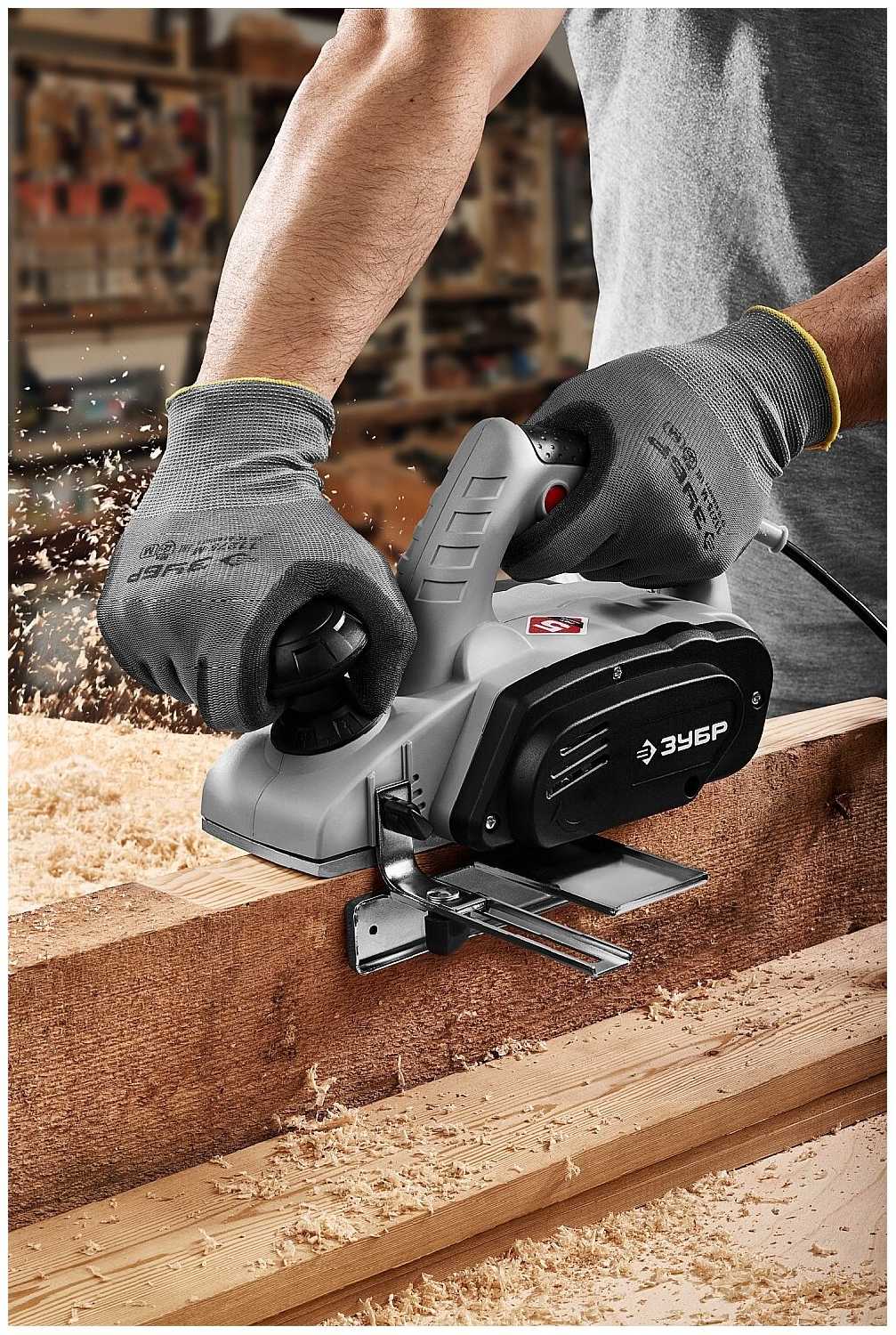 - Шкала на корпусе позволяет точно выставить толщину снимаемого слоя, что важно при обработке досок для полов или мебели.