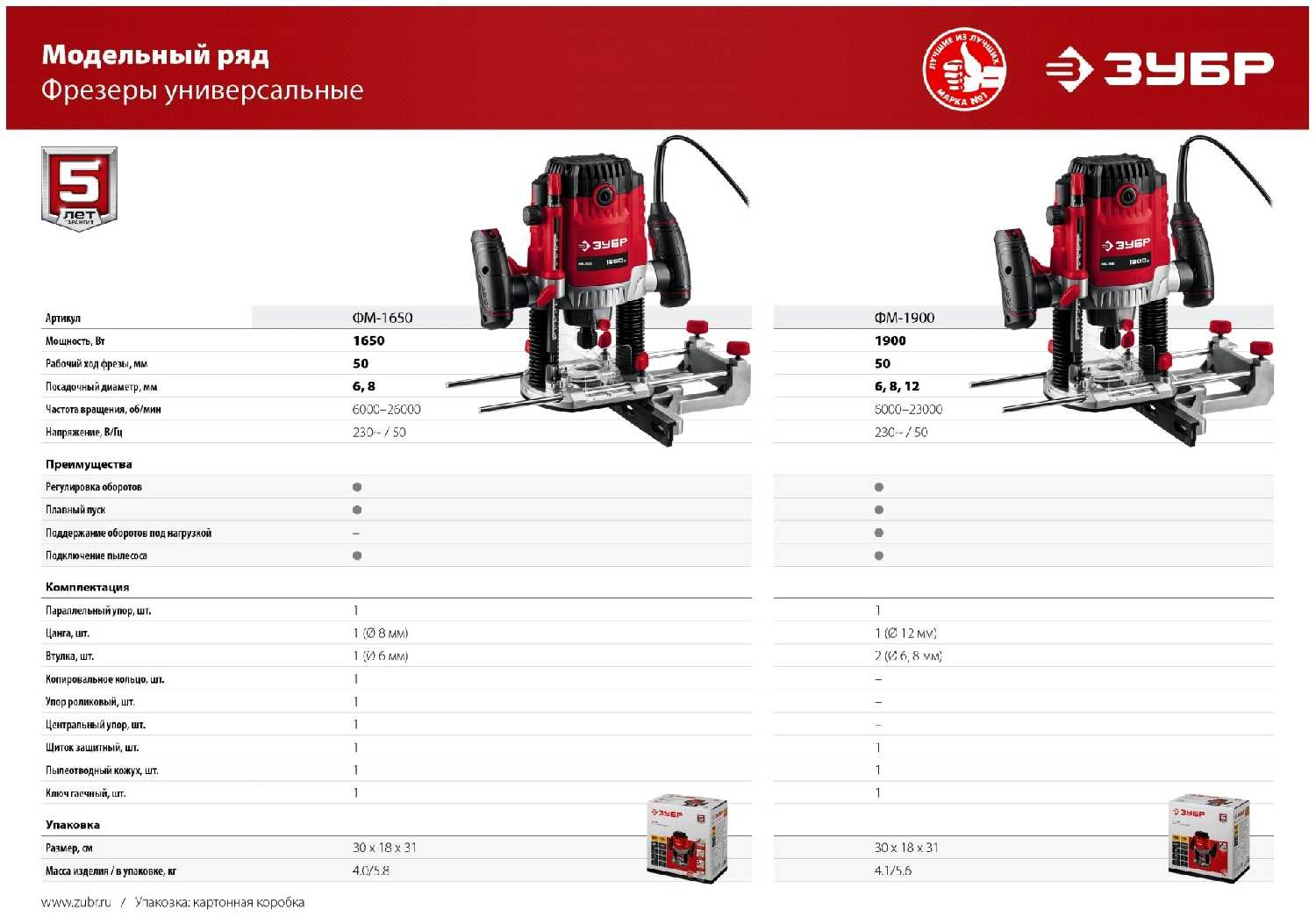 Характеристи ЗУБР ФМ-1900, 1900 Вт