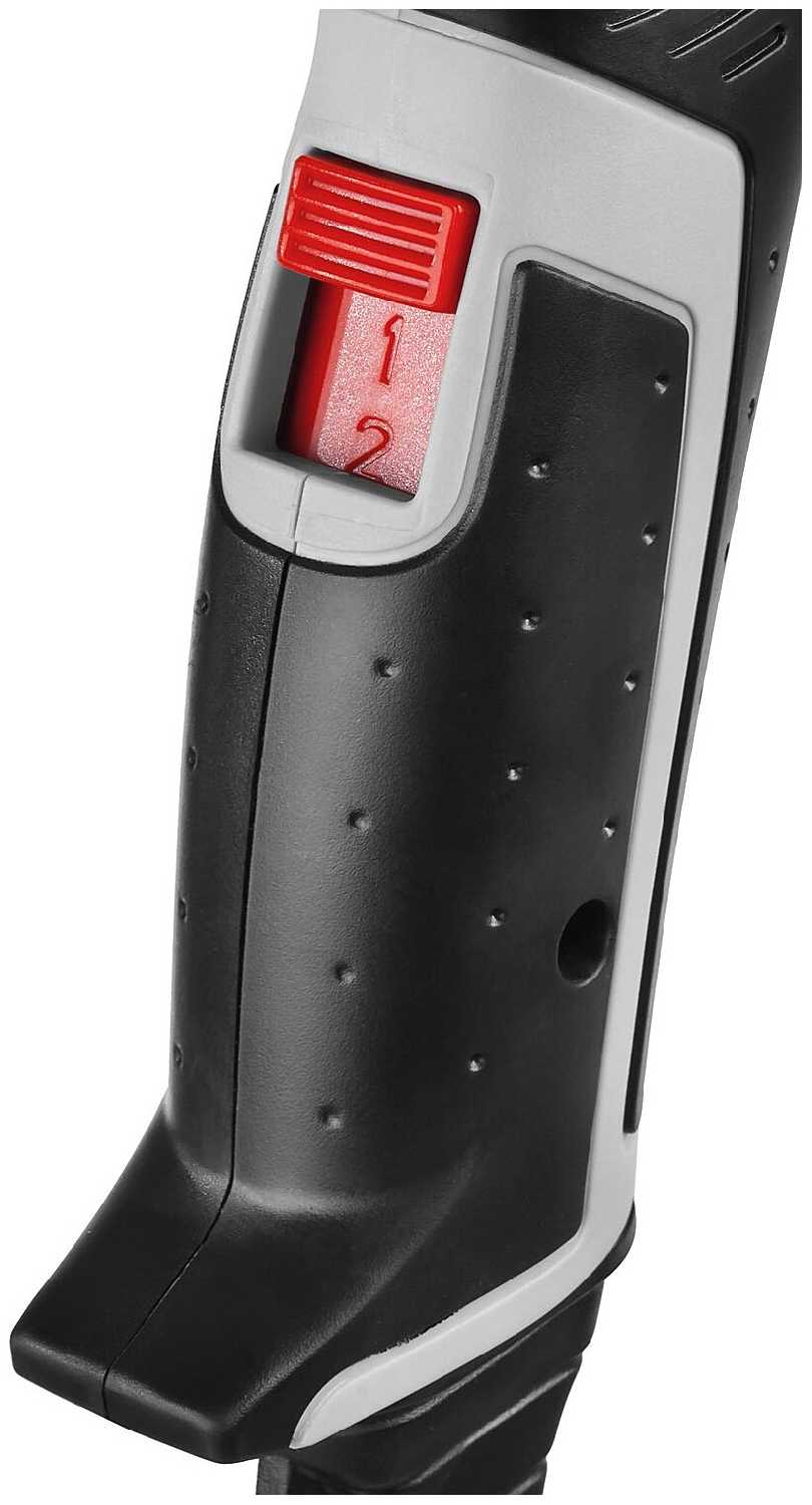 Кнопка включения имеет защиту от случайного нажатия и четкую фиксацию положений. Переключение между двумя температурными режимами осуществляется без усилий, но отсутствует плавная регулировка – для тонких работ (реставрация пластика) рекомендуют модели с термостатом. -