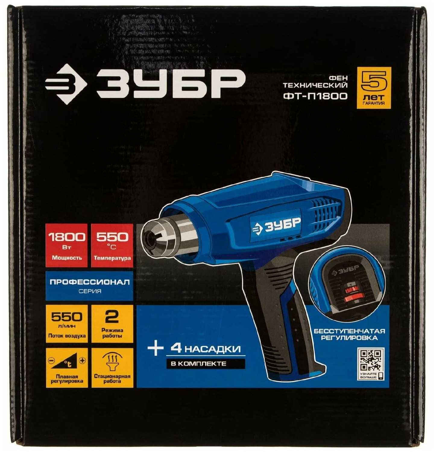 Отзывы о Строительный фен ЗУБР ФТ-П1800, 1800 Вт