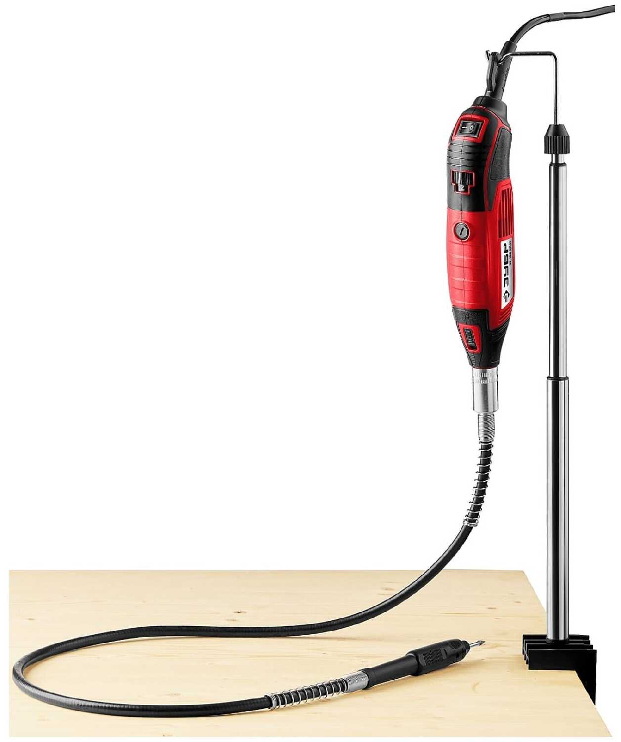 - Наличие струбцины и штатива позволяет фиксировать гравер для стационарных работ.