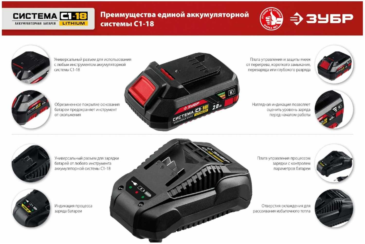 - аккумуляторная система: ЗУБР С1-18