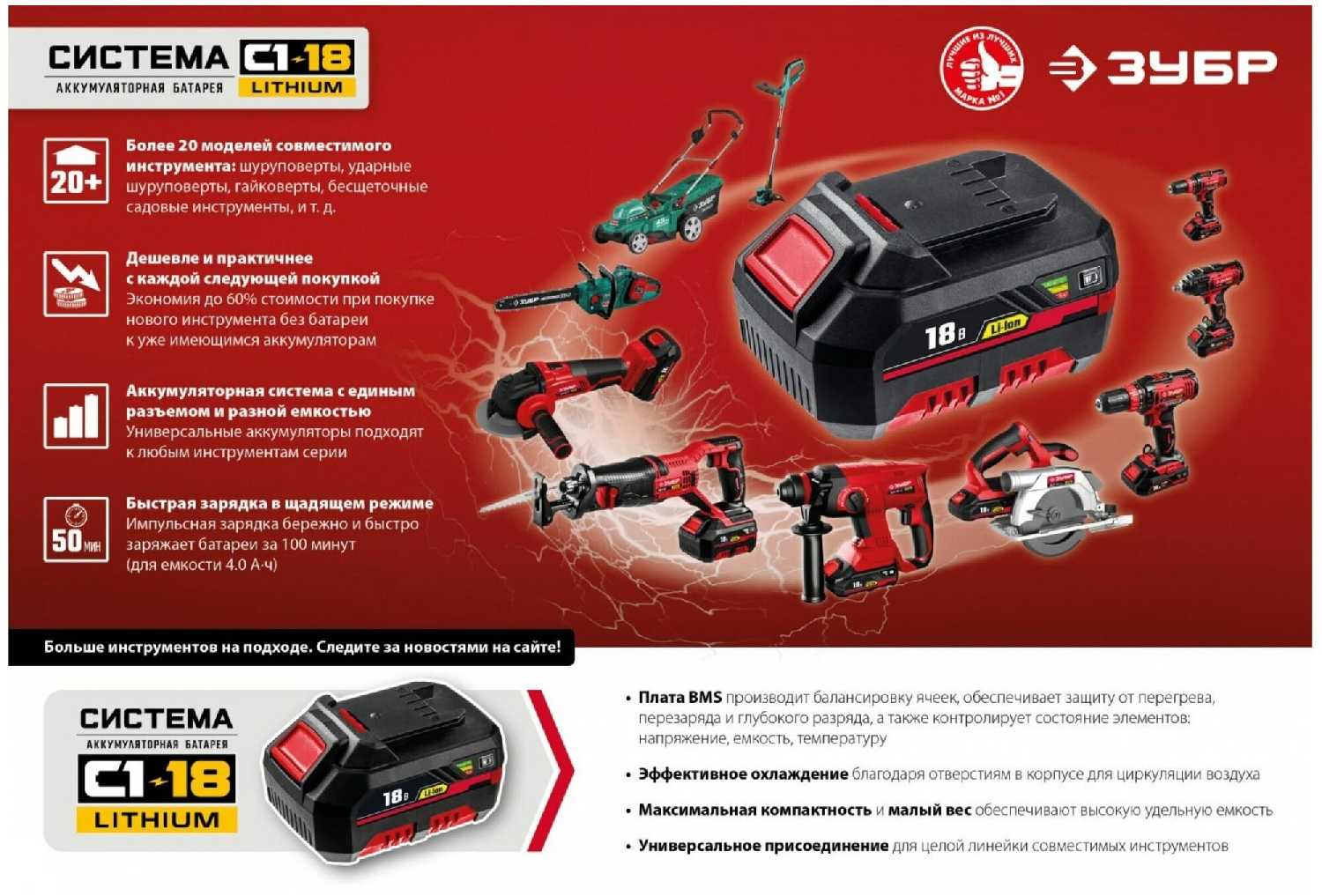- аккумуляторная система: ЗУБР С1-18