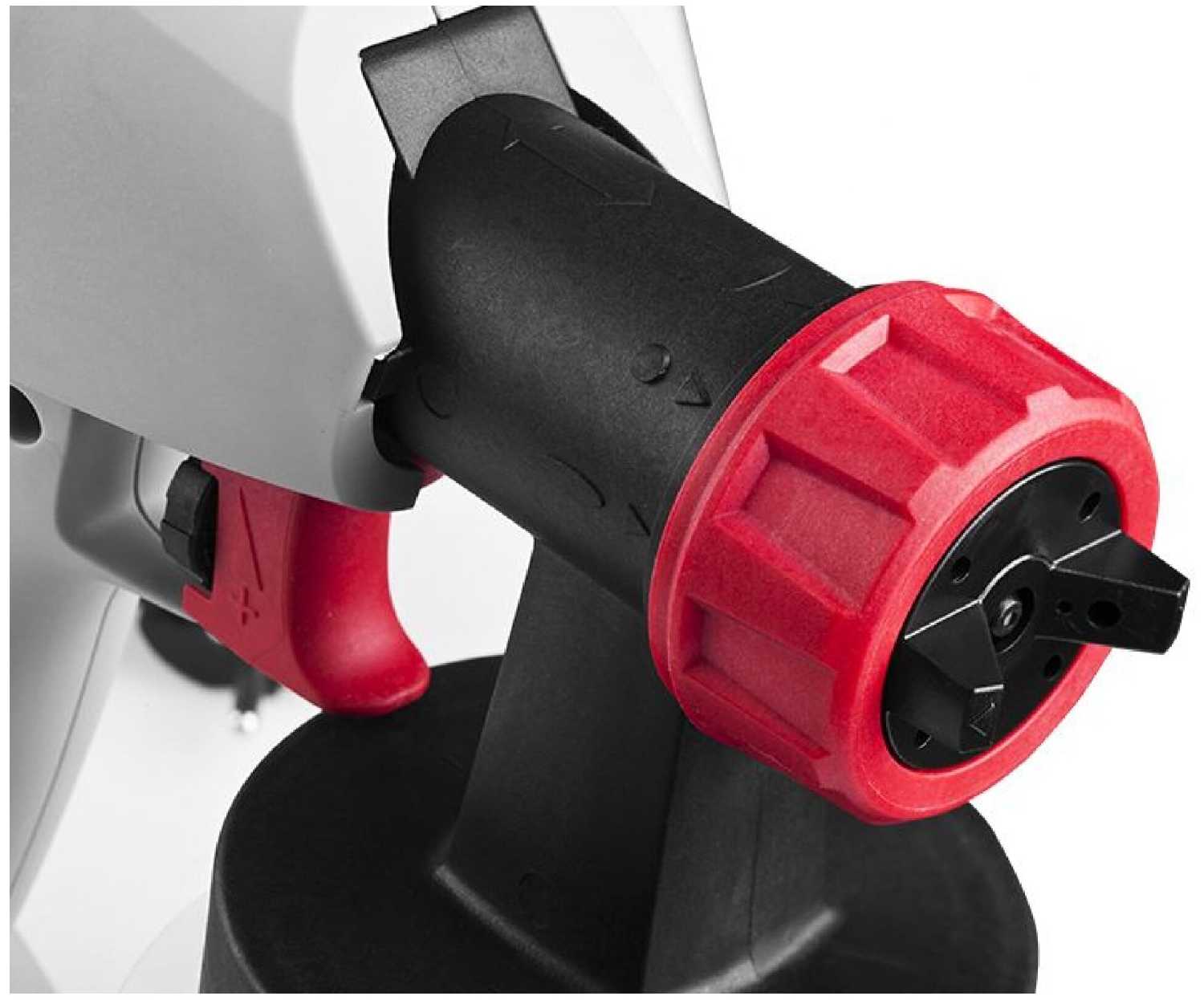- Колёсико на курке позволяет настраивать подачу краски, обеспечивая равномерный факел для акриловой краски, разбавленной в 1,5 раза, и предотвращая наплывы на ребристых поверхностях вроде профнастила.