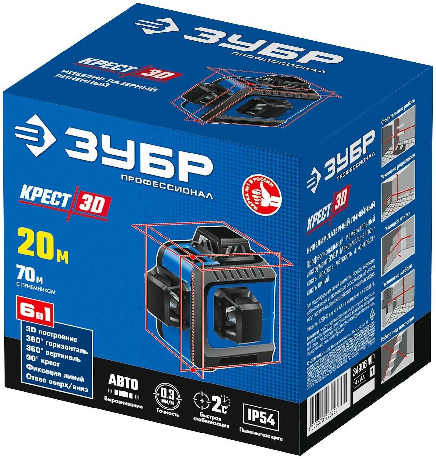 ЗУБР линейный лазерный нивелир крест 3D 34908?