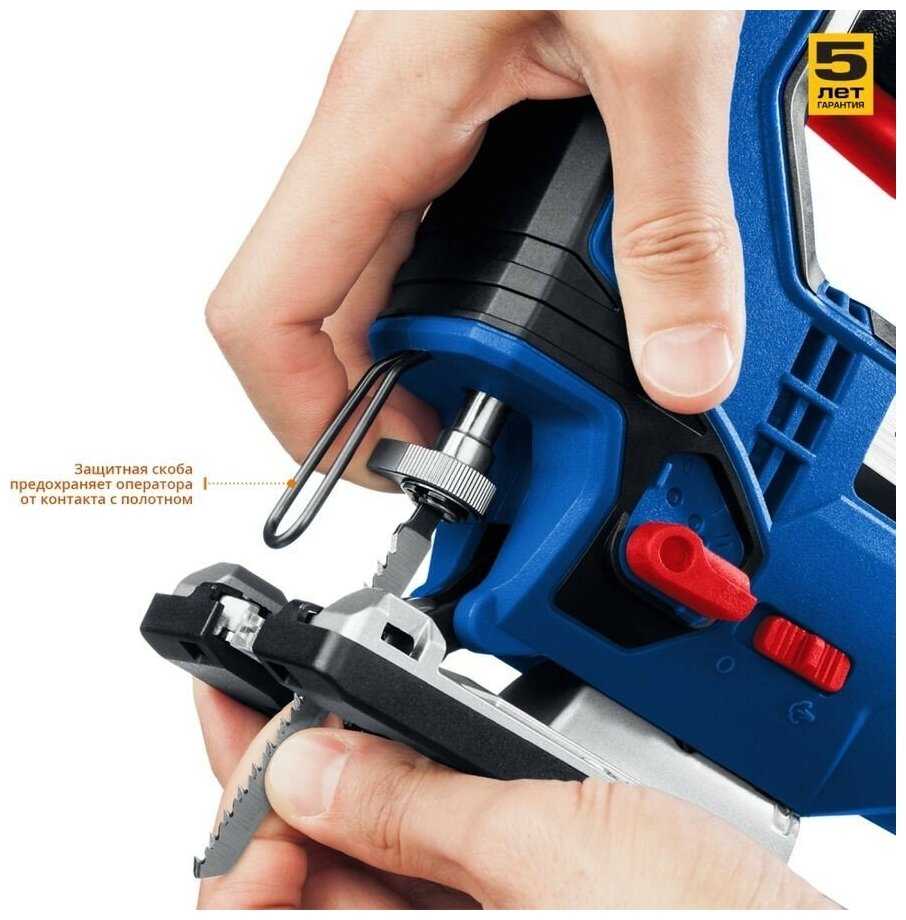 | Особенности конструкции : | антивибрационная система, быстрозажимное крепление пилки, возможность подключения пылесоса, обрезиненная рукоятка, отсек для хранения пилок, подсветка, сдув опилок |