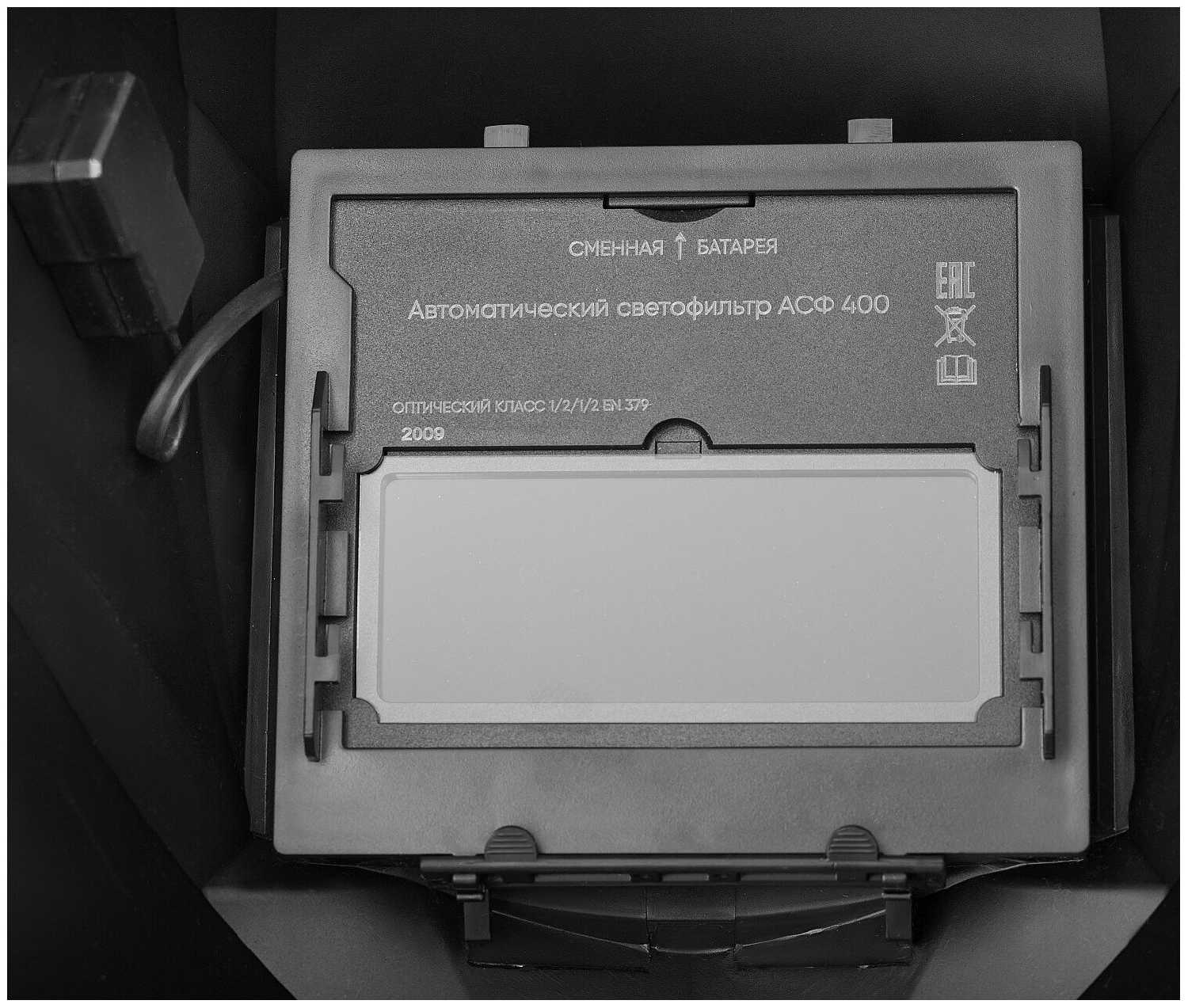 - + Не громоздкая. Не слишком маркий серый цвет. Регулируемый светофильтр (плавная регулировка всех основных параметров). Сменный элемент питания ( довольно распространённый и относительно недорогой CR 2032). Достаточное большой диапазон регулировок наголовника (он не самый простецкий, ставиться на большое количество масок в не самой бедной комплектации). Стандартный размер картриджа 110x90 мм (думаю, что в случае чего можно будет быстро найти замену, а при желании заменить на чно-нибудь получше).