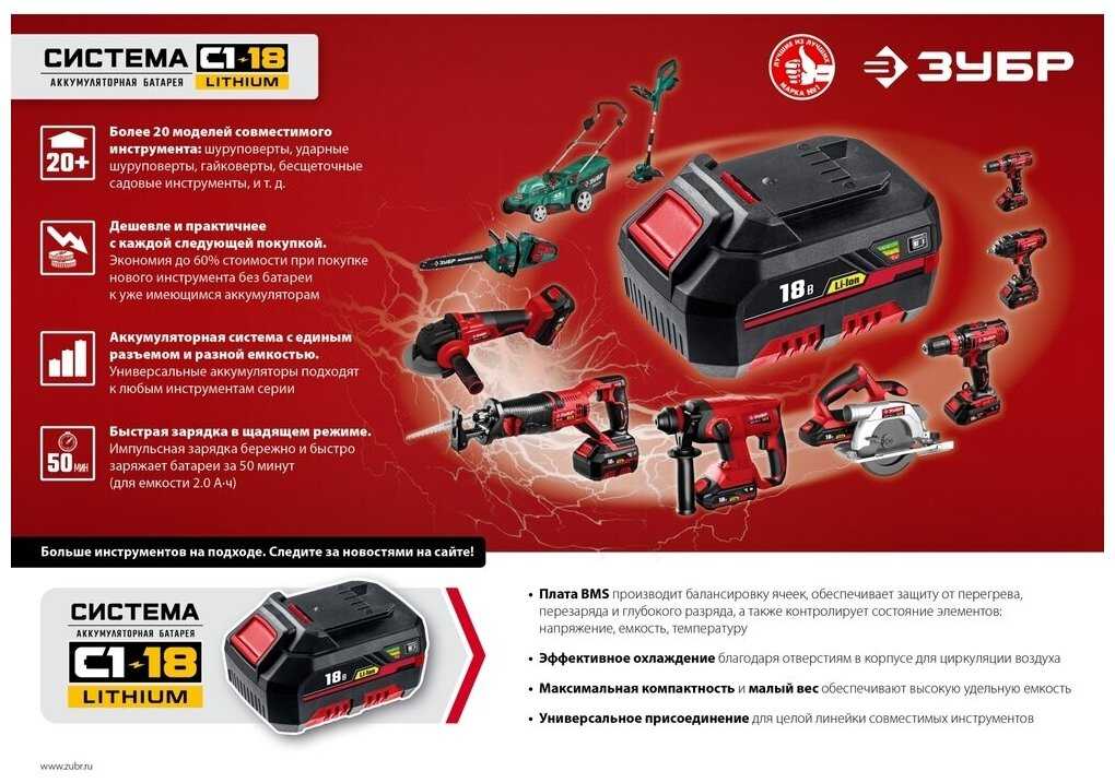 啸邪褉邪泻褌械褉懈褋褌懈 袟校袘袪 袦邪褋褌械褉 袘袟校-小1-18 (Li-Ion 18 袙)