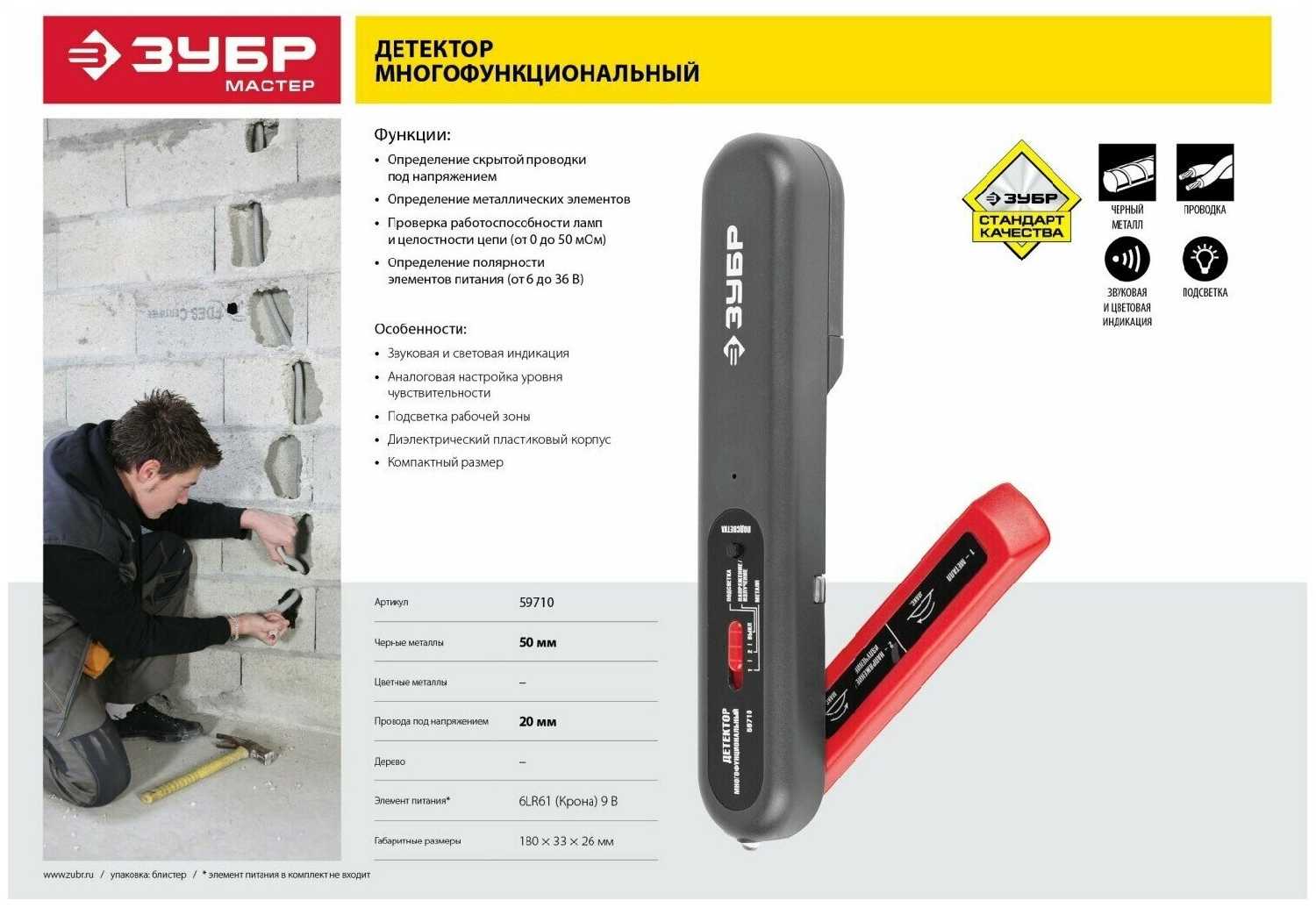 Характеристи ЗУБР Многофункциональный тестер (до 50мм)