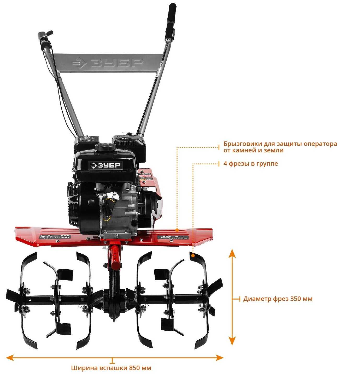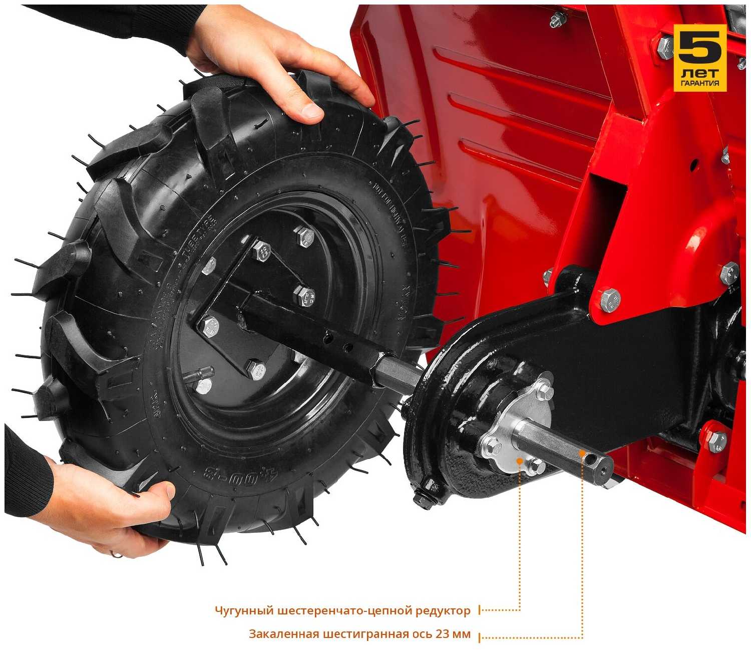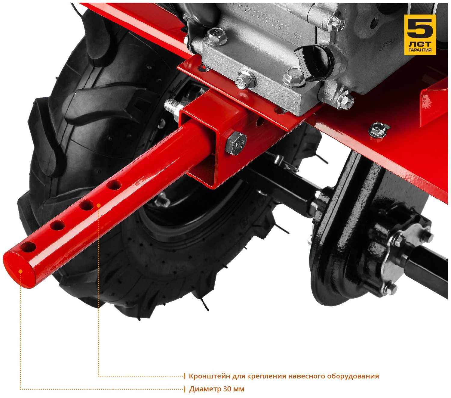 - Отсутствие транспортировочных колёс усложняет перемещение мотоблока.