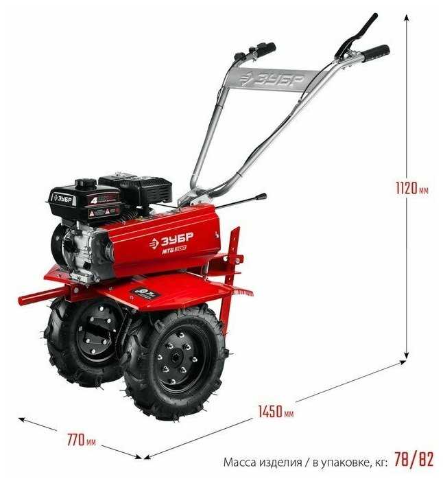- Двигатель (вероятно, Lifan 170FA) обеспечивает стабильную работу даже на целине, не перегружая пользователя.