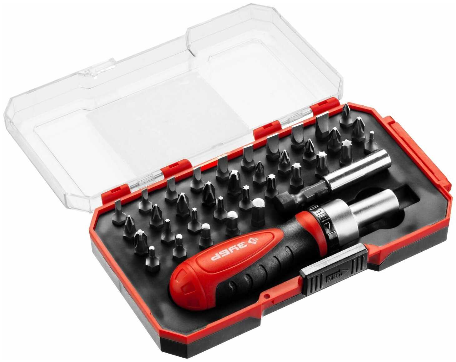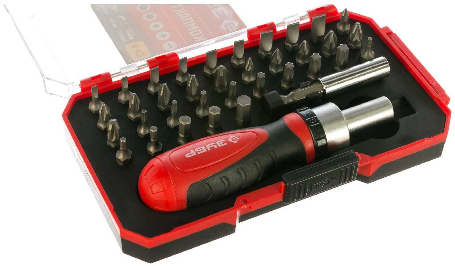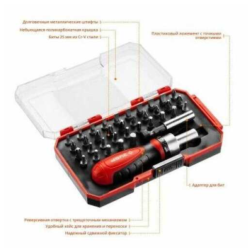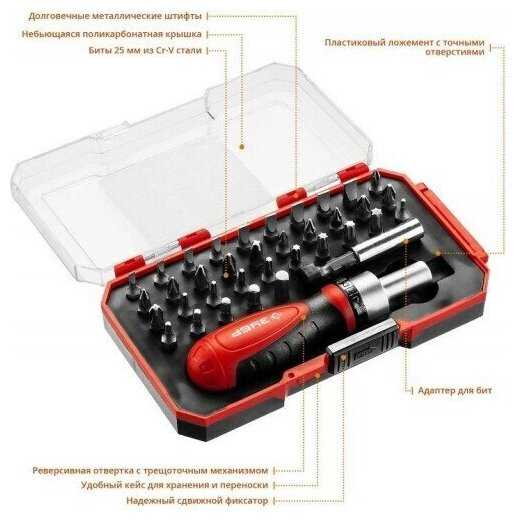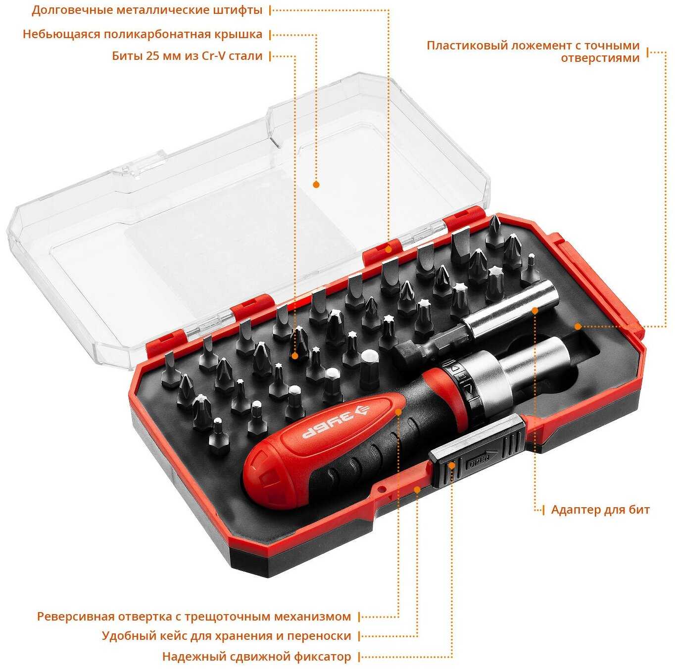 - + биты из хром-ванадиевой стали достаточного типоразмера, рукоятка с реверсом