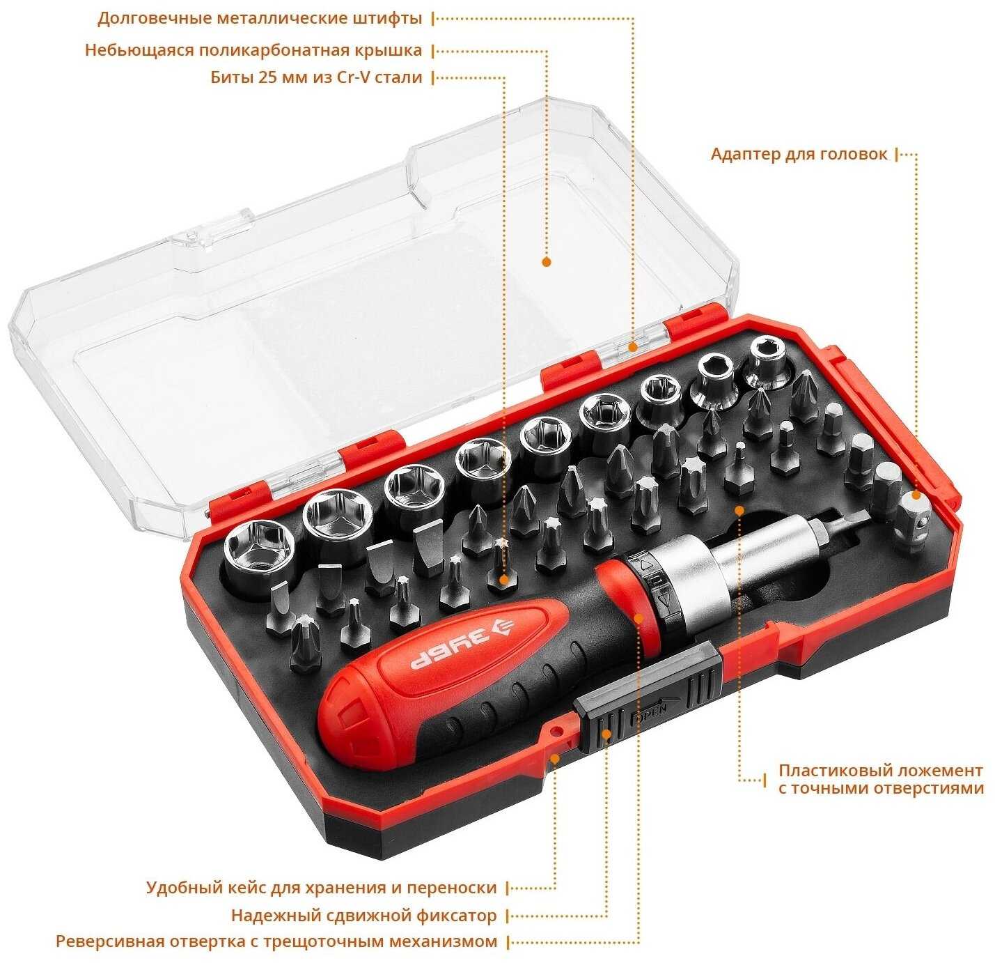 - + Для домашнего пользования отличный набор. Биты на высоте. Два разных набора от Зубра, один на даче, другой дома.
