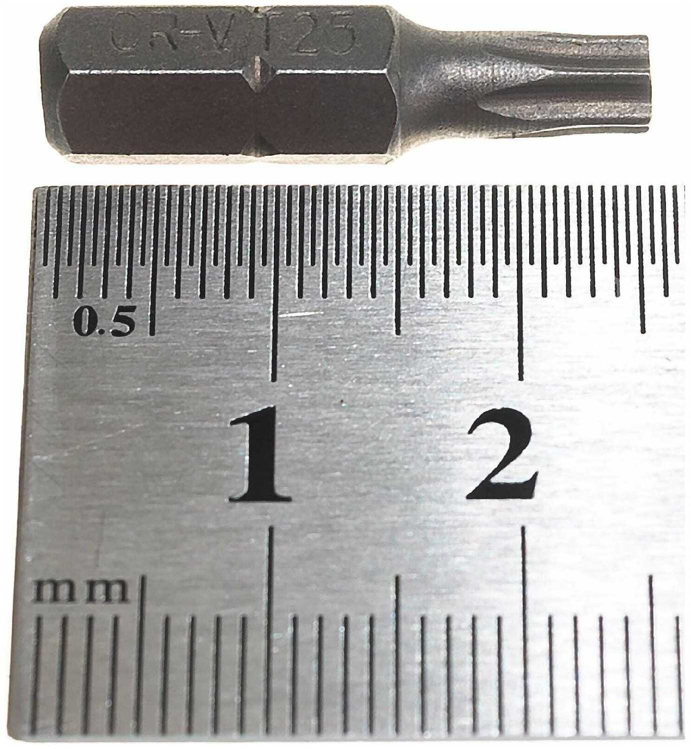 Хотел снизить оценку за неровно просверленные отверстия (на фото, биты T8 и T9), но на работу это, оказывается, не влияет. Само отверстие в битах этого размера - около 1мм в диаметре.